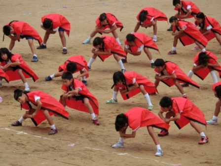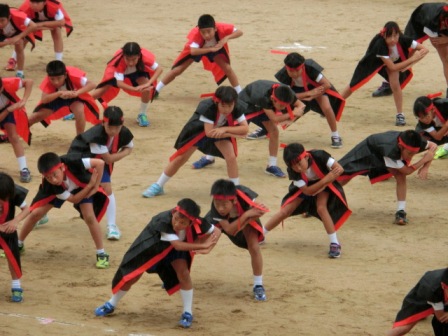 今日の1限は何とか曇り空だったので、ラッキーだった中学年。運動場でソーランの仕上げに余念がありませんでした。「もっと低く」、「列を揃えて」の檄が飛んでいました!