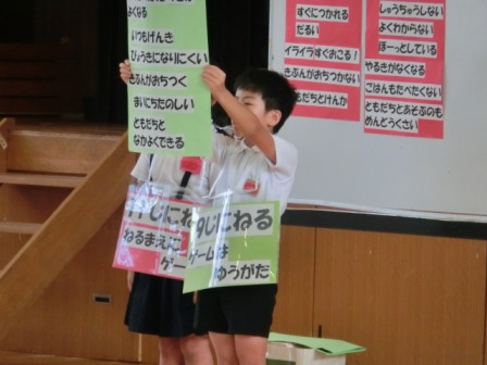 その後、後半の夏休みも、安全に過ごして欲しいと伝え、「生活のきまり」の再確認を行いました。どの子も真剣に話を聞いていて、1学期と変わらず良い姿でした。