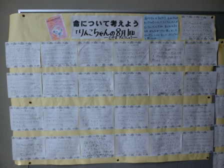 先日、8月5日(金)に全校登校日があり、全校集会が行われました。「命の大切さ」を考えるための集会であることを子どもたちに伝え、赤ちゃんの写真を1枚提示し、一遍の詩を紹介しました。