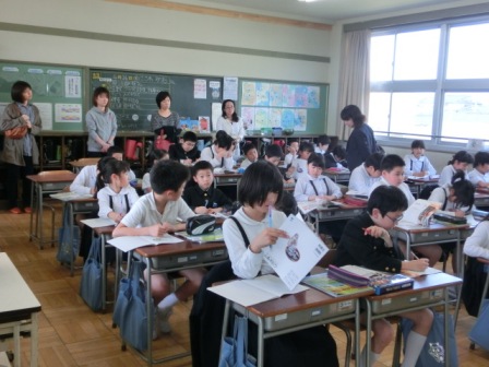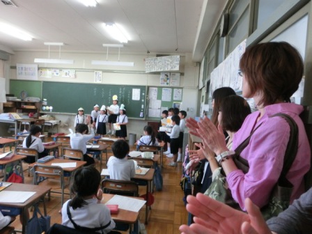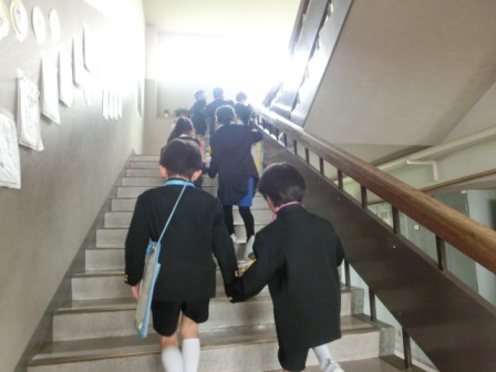 整然と整列し話を聞く5・6年生 電車にも乗ります。マナーを守って、いってらっしゃい!