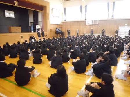 本日、27年度の修了式を迎えました。保護者の皆様、今年度のご協力・ご支援に深く感謝いたします。ありがとうございました。来年度もよろしくお願いいたします。修了式の様子を紹介します。