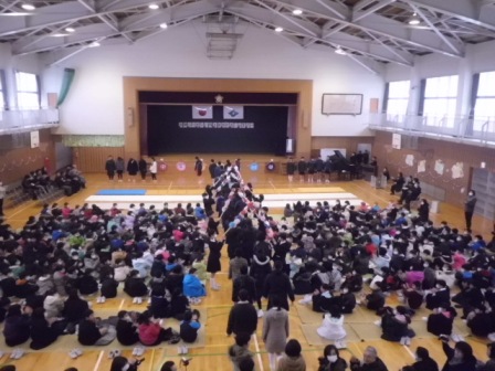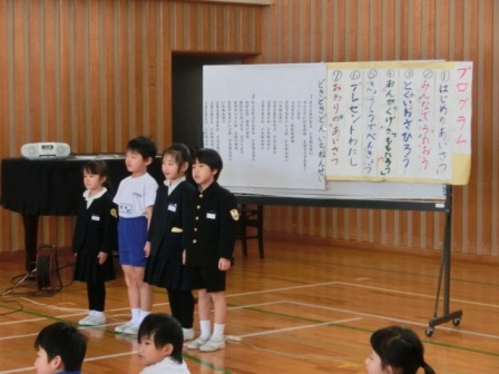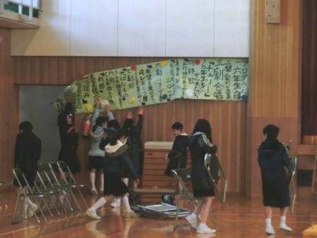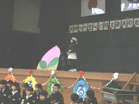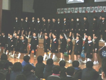 2016年2月26日 15時28分 今日、6年生を送る会が無事に行われました。各学年これまでの練習の成果を十分発揮した素晴らしい会となりました。特に学級閉鎖開けの2年生や4年生も、1限目に最後の打ち合わせを行い、どこがどう変わったのか全く分からないほど頑張ってくれました。どの学年も欠席の子たちの思いを背負い、精一杯劇や歌を披露しました。