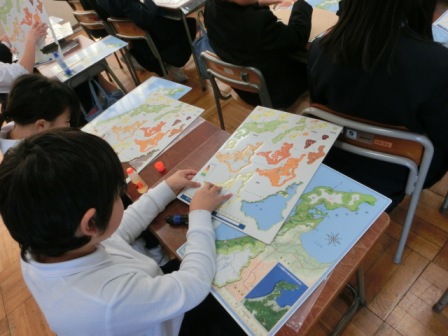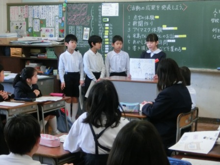 外日角小学校の校名にも着目し、「外」からは海外、「日」からは温かさ、「角」からは角張っている等が連想されると話され、かどが取れて、度量の大きい丸い人になるにはどうしたらいいか、などの質問がなされました。