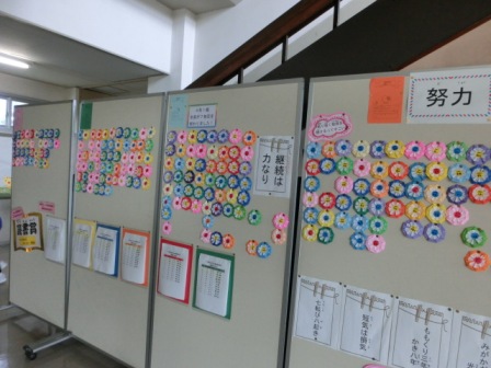 学年によって目標回数が示されています。それを超えると「達成賞」がもらえます。どのクラスも、どのチームも、友だちと励まし合い、温かな声かけで目標を達成して欲しいです。