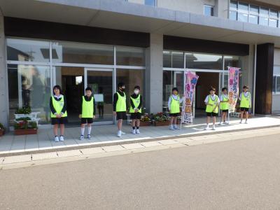 新しい5,6年生企画委員があいさつ運動に取り組んでいます。