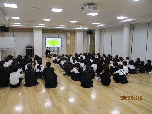 本日5時間目に、多目的ホールで学年集会を行いました。