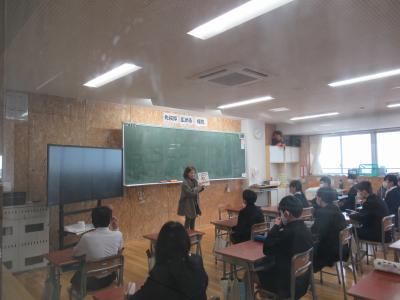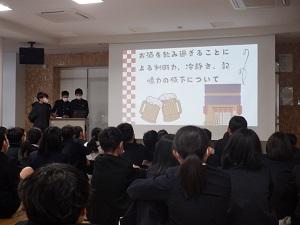 喫煙・飲酒・薬物の危険性について、各教室で調べてまとめた内容を、学校薬剤師の髙井さんに聞いていただきました。