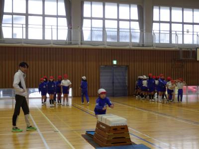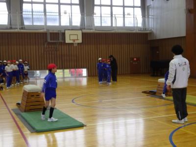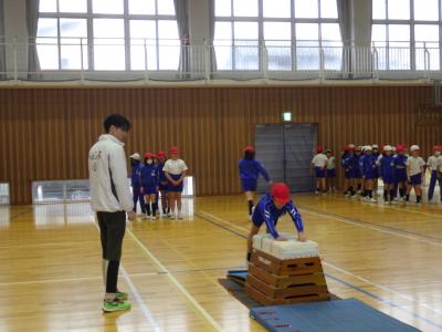 2025年3月3日 13時57分3年2・3組がクラブパレットの方をお招きして、跳び箱練習を行いました。