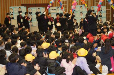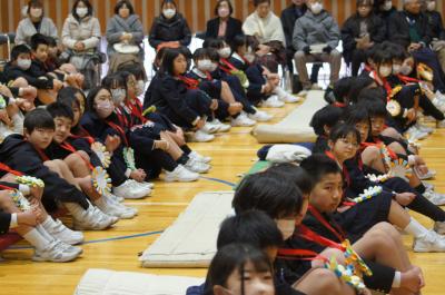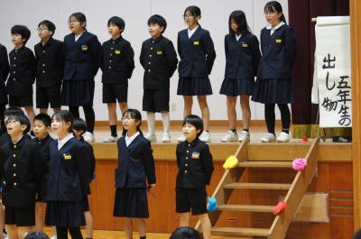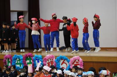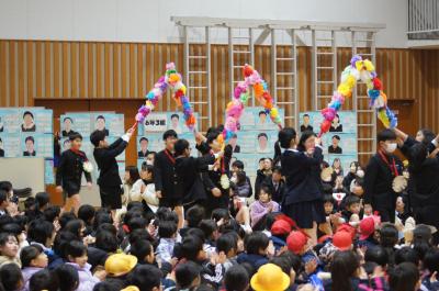 どの学年も6年生に感謝の気持ちを込め、寒さを吹き飛ばすような出し物を披露していました。