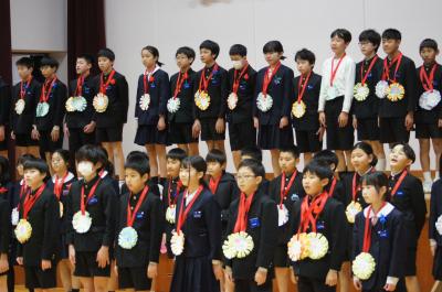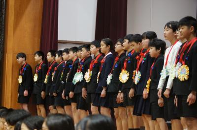 4年生は、6年生を送る会で「すてきな友達」の合唱と手話、ダンスを頑張りました。感謝の言葉も大きな声ではきはきと伝えることができました。振り返りの作文には、「5年生になったら、司会や飾りつけを頑張りたい。」「この時間がずっと続いたらいいのに・・・と思えるぐらい楽しい時間だった。」「歌は、今までで一番、気持ちを込めて歌うことができた。」など充実した感想が多く見られました。