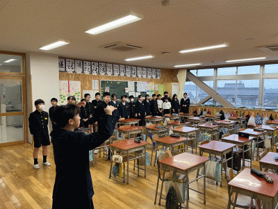 ⇩寒波の影響で体育館での全校合唱はできませんでしたが、各クラスで今月の歌を歌いました。