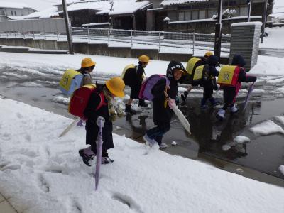 久しぶりに、多めの積雪がありました。1年生は担任の先生から雪道の歩き方について話を聞いて下校しました。