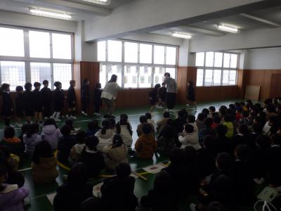 今日から6年生を送る会特別時間割が開始され、各学年体育館練習を始めました。