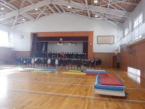 体育館での6年生を送る会の練習がスタートしました。