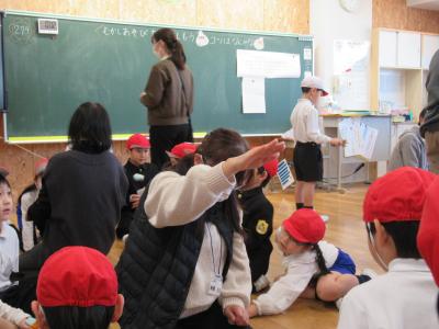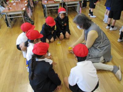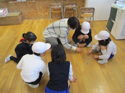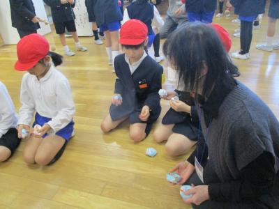 地域のおじいちゃんおばあちゃんからお手伝いいただき、昔遊びを教わりました。
