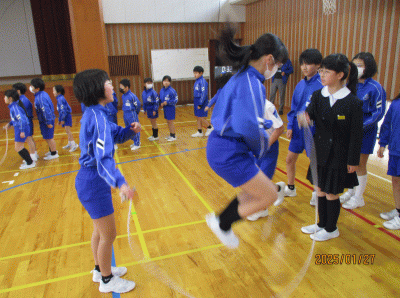 1月27日(月)になわとび集会が行われました。5年生は2年生と一緒に行いました。学年目標「お手本・協力・自己判断」を意識して行動できている人が多く、時間に余裕をもって移動して整列したり、2年生を誘導したり、競技中あたたかい声掛けをおこなったりできていましたね。「スポチャレいしかわ」のホームペーシでは、石川県内の各学年やクラスと記録が掲載されており、よりよい記録に向け、2学期末から練習を頑張ってきました。スポーツにしても行事にしてもしっかりめあて(目標)をもって取り組むことが自分の成長に繋がります。6年生の送る会の準備も並行して進めていますが、掲げたスローガンを意識して今後も取り組んでいきましょう。