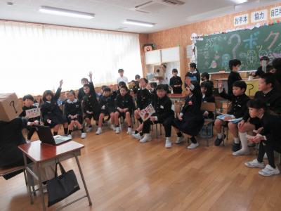 11月22日(金)「のまりん」こと、野間成之さんをゲストティーチャーとしてお迎えし、紙芝居をしていただきました。どの子もお腹を抱えるぐらい笑って、温かい雰囲気に包まれていました。紙芝居が終わった後も、手遊びの歌をうたう子供達の様子が見られました。