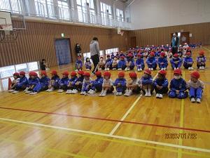 6年生と一緒に大繩集会のリハーサルを行いました。6年生に縄を回してもらって、一生懸命跳んでいました。本番にむけて練習頑張っています。