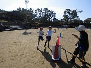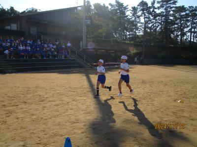 保護者の方に見られて、緊張した様子でしたが、楽しそうに走っていました。