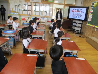 学校公開日 1年生 給食についてのお話を聞きました