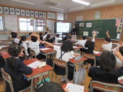 学校公開の期間、ゲストティーチャーとして栄養教諭の刈本先生にお越しいただき、ふるさと給食について学びました。