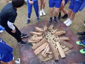 子供達は、薪や藁を並べたり、蓋となる粘土を藁に塗ったりと貴重な体験ができました。