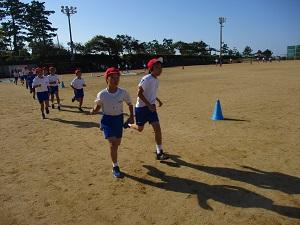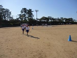 2年生も晴天の中、がんばって走っていました。