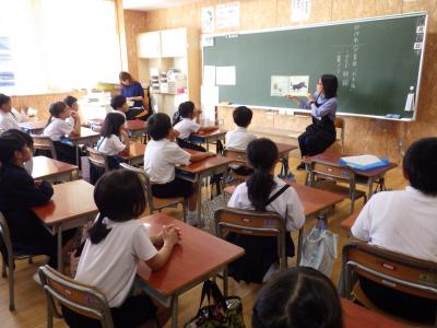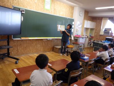 先日、市役所からゲストティーチャーをお招きして、特産物についてのお話を聞きました。