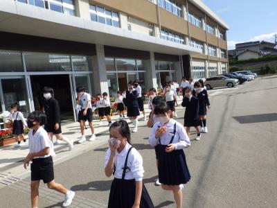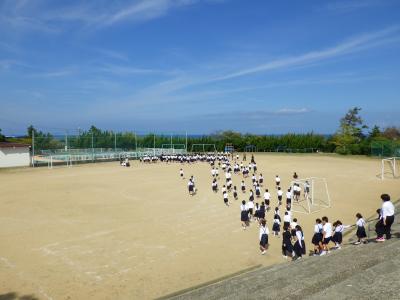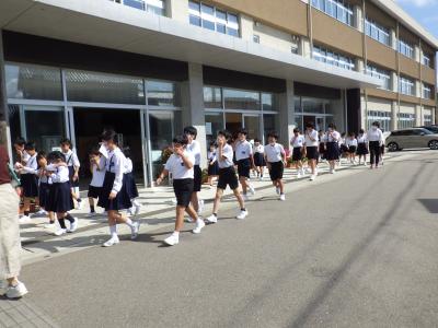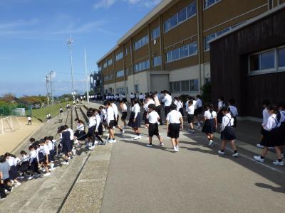 今回は事前に知らせておきませんでしたが、急な放送にびっくりしながらも、落ち着いて運動場へ避難できていました。