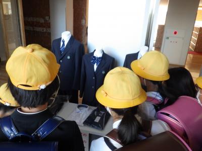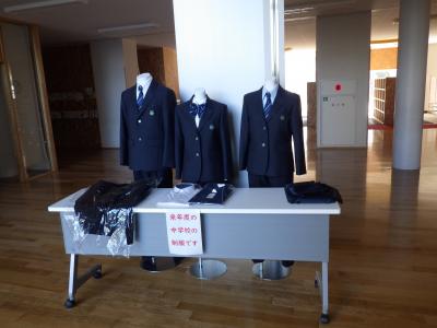 来年度より新しくなる、河北台中学校の制服見本を本校ホールに展示しました。