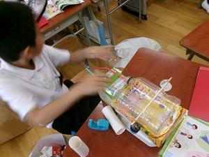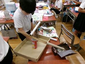 家から持ってきた材料を見て設計図を作り、思い思いに作っていました。