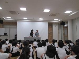 視覚障害者の西さんをゲストティーチャーにお迎えして、お話をしていただきました。料理する姿や盲導犬と歩く様子の動画も見ることができました。真剣に話を聞いたり、たくさん質問したりする子供達の姿を見ることができました。
