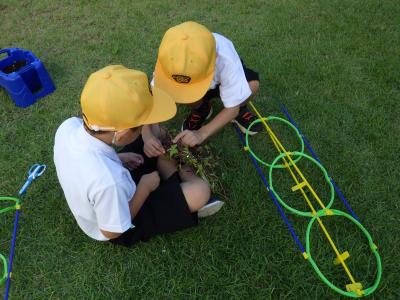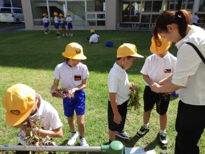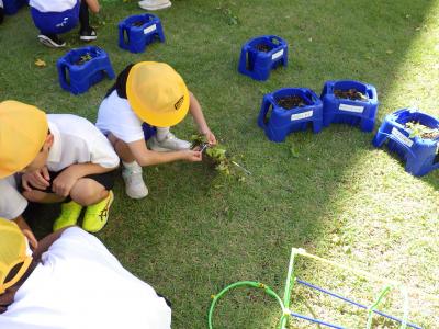 1年生が朝顔のつるを使ってリースづくりをしていました。