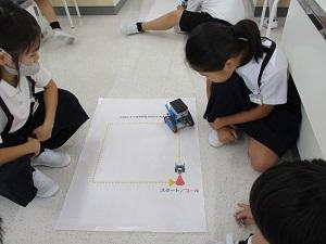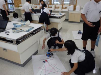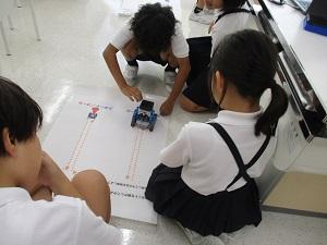 今日は、4年1組が体験しました。タブッレットやIchigoJamを使って、ロボットを動かしました。ロボットを前後に進ませたり、180度回転させてUターンさせたりしてプログラミングを楽しむことができました。