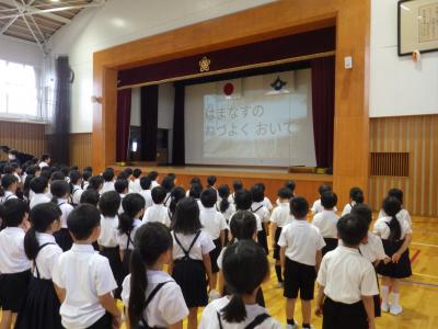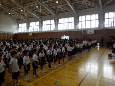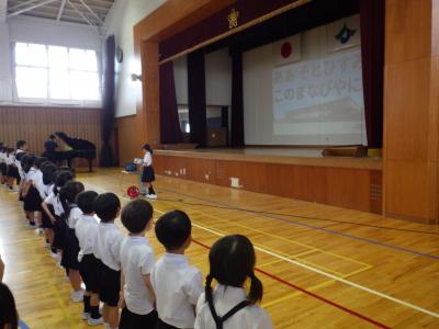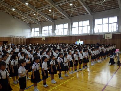 列の並びや立ち方、校歌を歌う姿等、1~5年のお手本として素晴らしい態度で臨むことができました。
