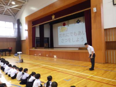 玄関では、1学期末と同じように「いいあいさつ」のできる児童がたくさんいて、しっかりと身に付いているなと感じました。生活目標にもあるように、この「いいあいさつ」を学校以外の場でも出せるようにしたいですね。「いいあいさつ」頑張りましょう。