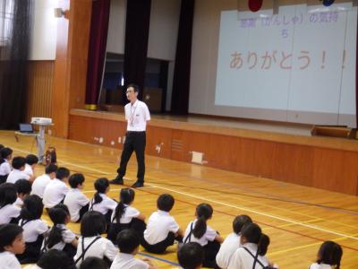 また、オリンピック選手を例に挙げ「感謝の言葉」について始業式で話しました。「ありがとう」という言葉が学校中にあふれると「安心・安全な学校」になると思います。