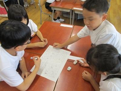 夏休みすごろくでは、夏休みにやったことを思い出しながら楽しそうに話していました。