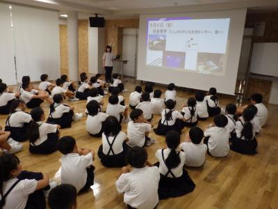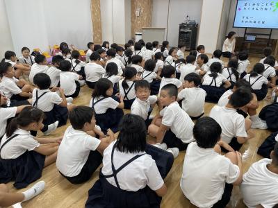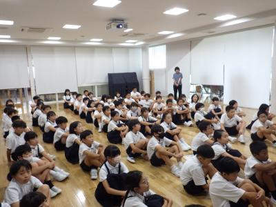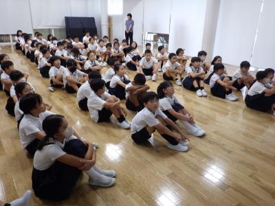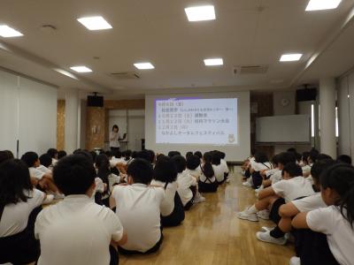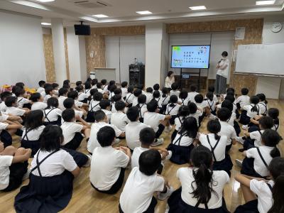 2024年9月4日 17時02分4年生は学年集会を行い、2学期に行われる児童会行事や社会見学についての話を聞いていました。