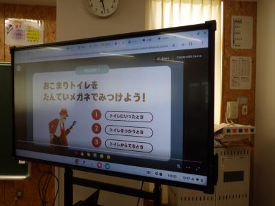 2年生はトイレの使い方を再度確認していました。