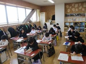 3学期が始まりました。始業式では,よい姿勢で真剣に話を聞くことができました。一生懸命に書き初め大会を頑張っていました。