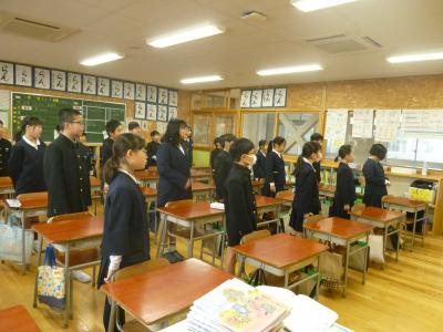 また、6年生を送る会で行う季節の詩の群読を行いました。