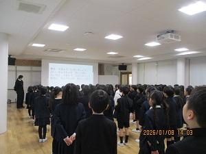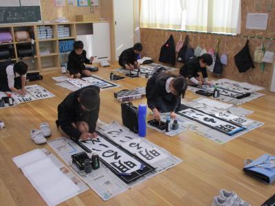子どもたちは真剣な表情で始業式や書き初め大会に臨んでいました。