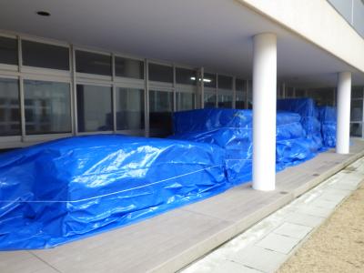 理科室の机、棚などはしばらくの間1階と2階ベランダに保管します。