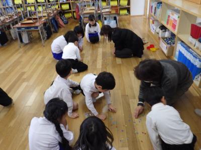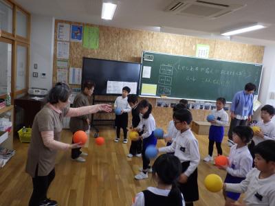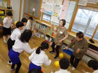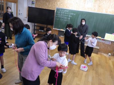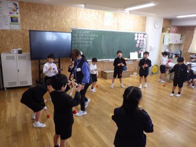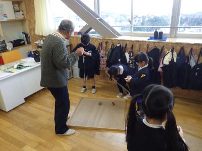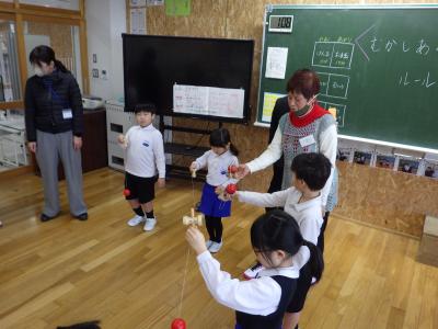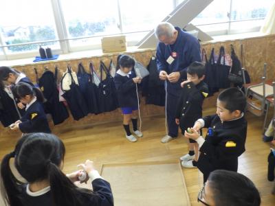 地域のゲストティーチャーの方を12名、お呼びして1年生が昔の遊びを楽しみました。
