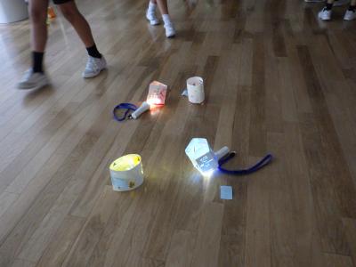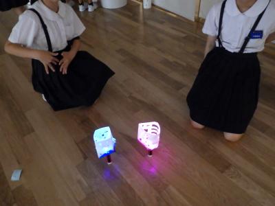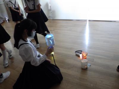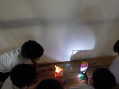 6年2組が多目的室を暗くして、ランタンフェスティバルを行いました。