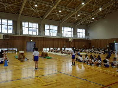 器械運動交歓会のリハーサル、第1弾として3年生に技を披露しました。
