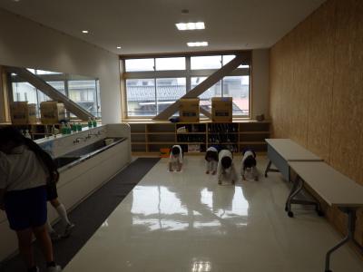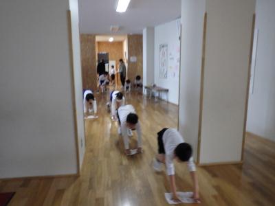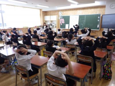 毎週月曜の朝学習の時間を使って、すっきりストレッチを行っています。