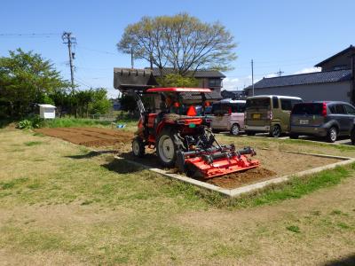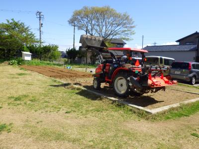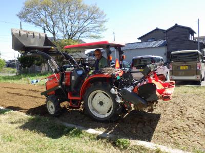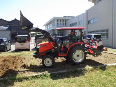 畑の先生、丸井先生がトラクターを使って学校の畑を耕してくれました。