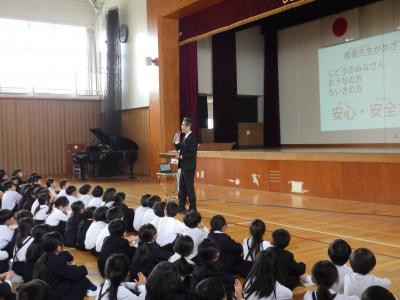 次に学習指導より、今月の学習目標「話す人を見て最後まで聴こう」についての話でした。